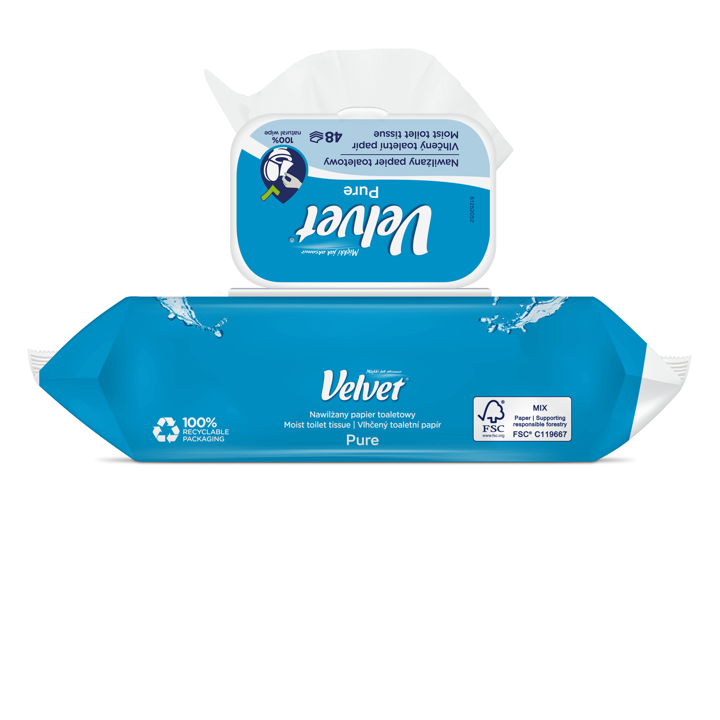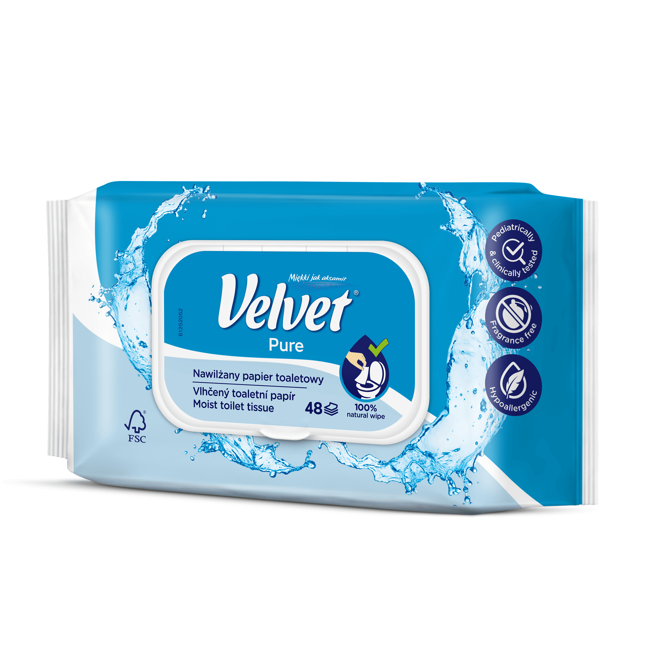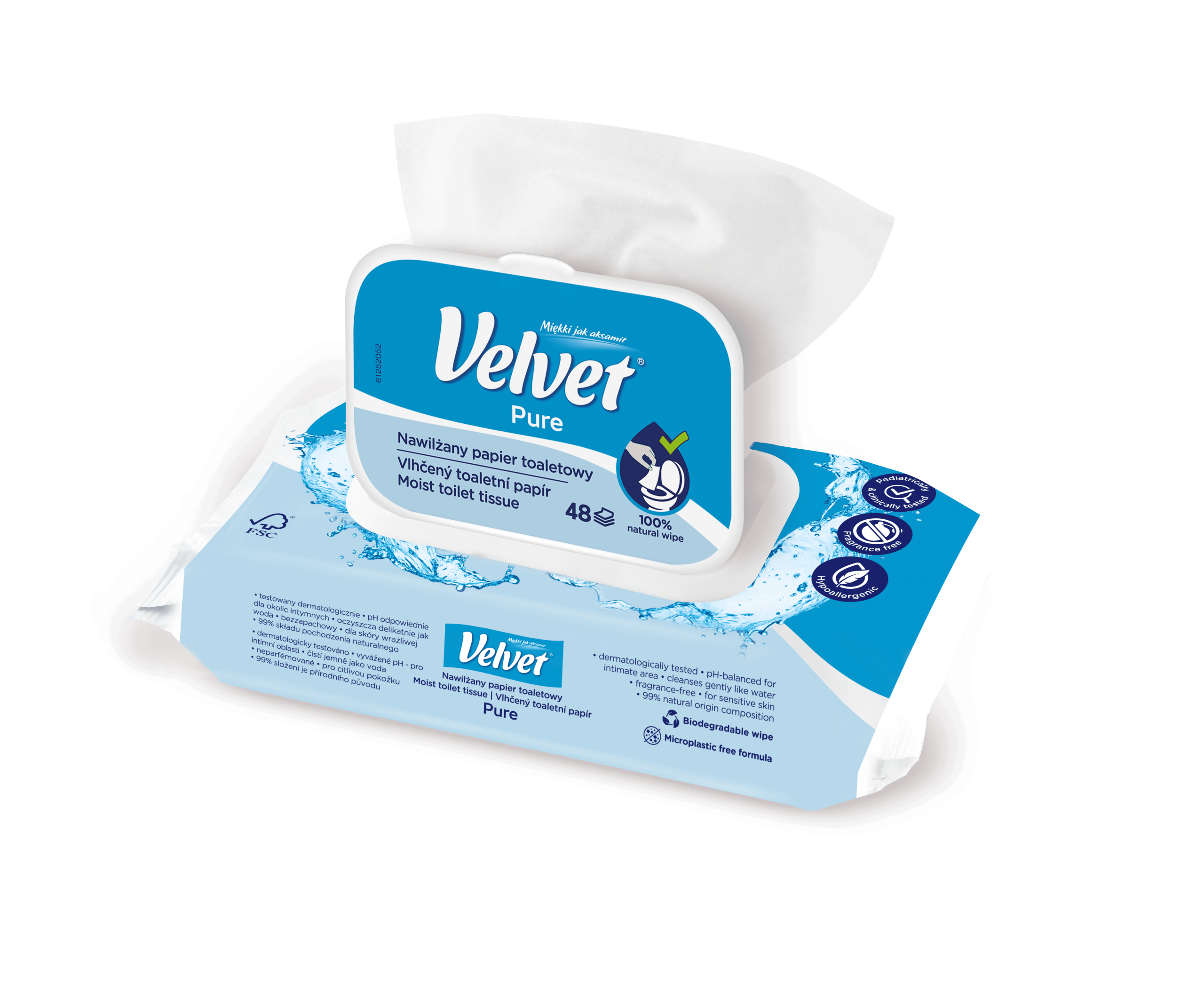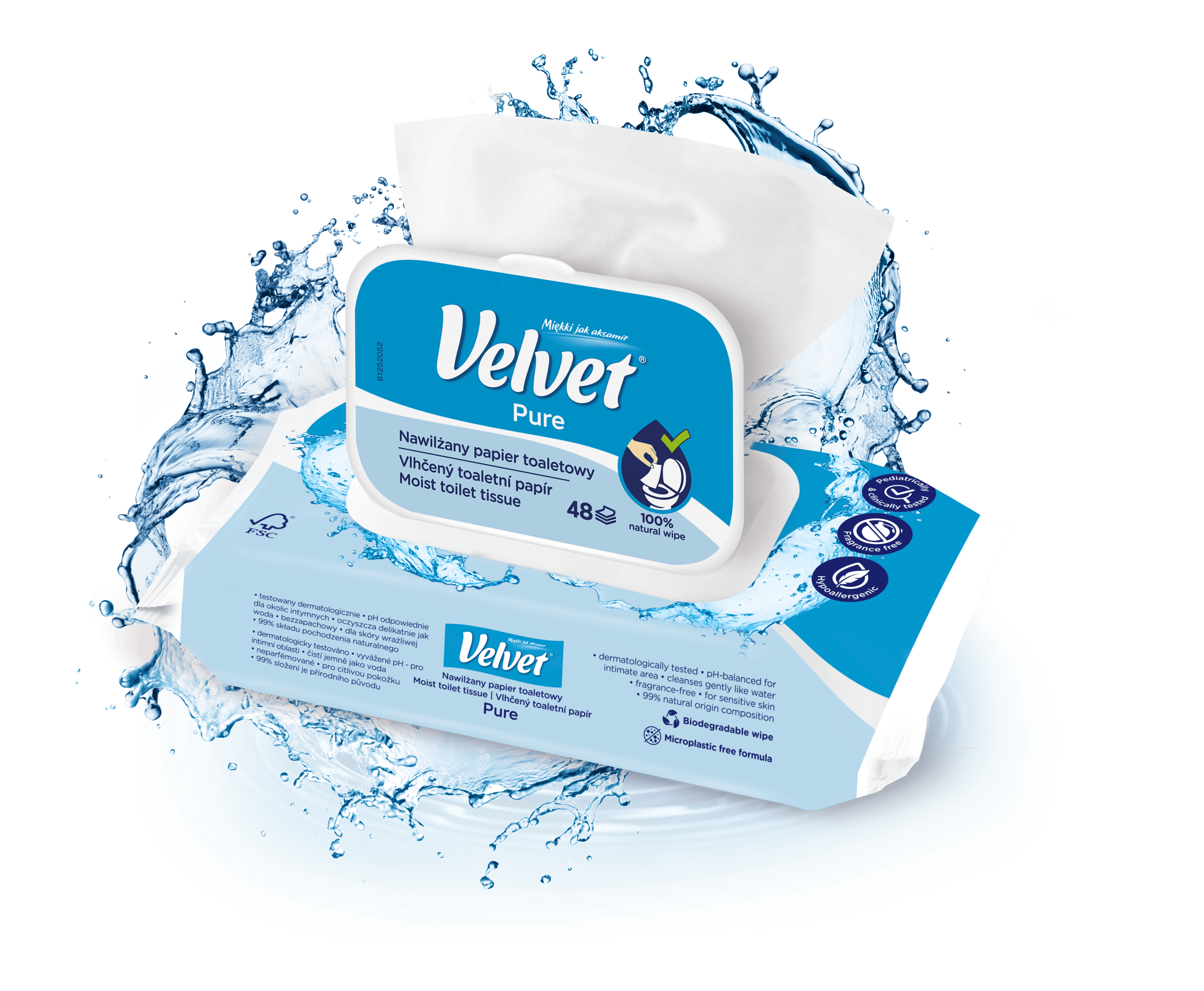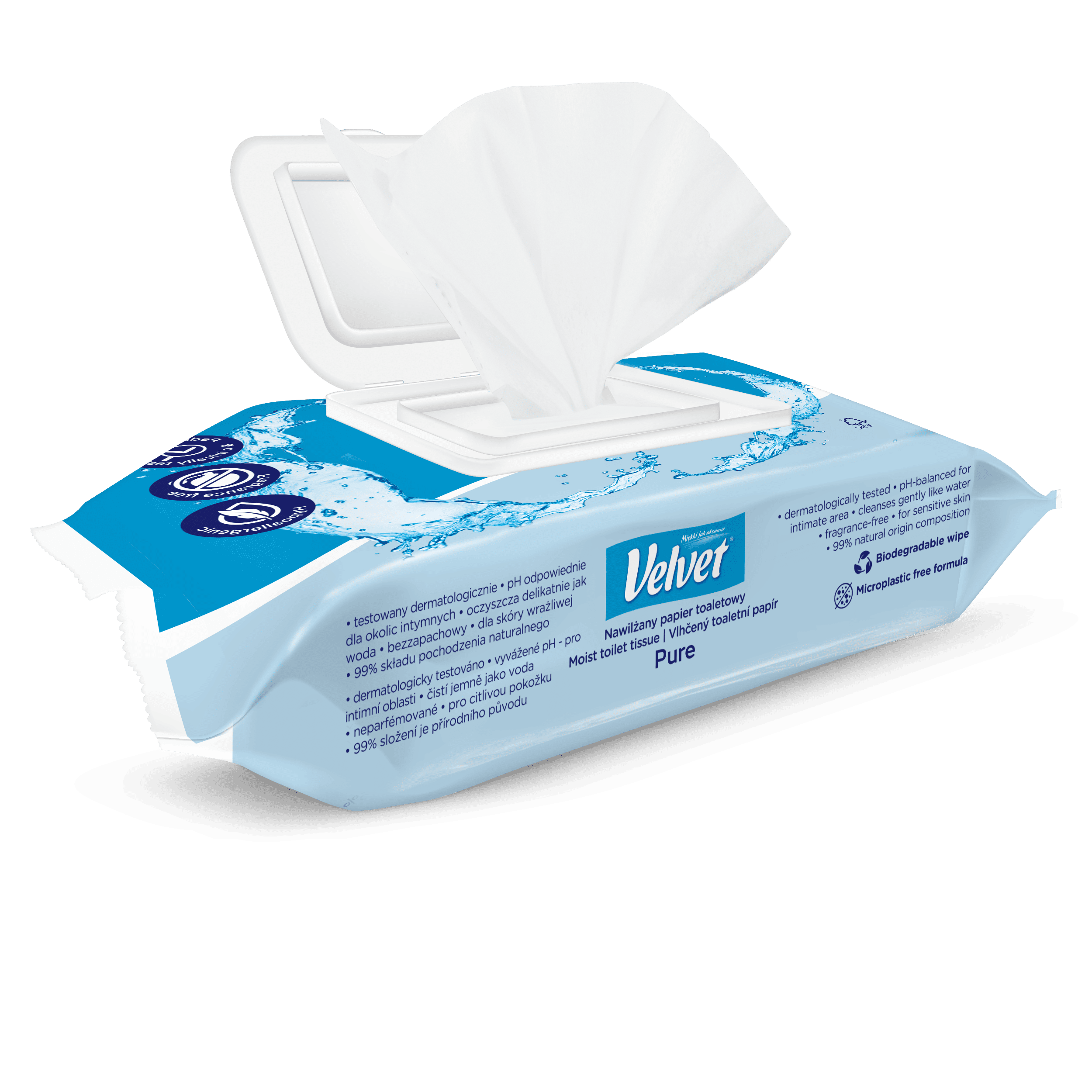 Crystalline purity and gentleness. Fragrance-free, moist toilet paper with a gentle formula that works gently and effectively like water! Simple composition, pH suitable for the intimate area, aloe vera extract and lactic acid ensure daily hygiene and care, creating a feeling of freshness and comfort in any conditions. It can be flushed down the toilet – the wipes are biodegradable, just like ordinary toilet paper. The product has been dermatologically tested.