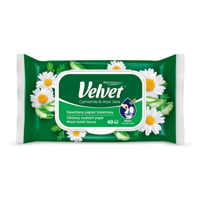 Velvet nawilżany papier toaletowy to mały bohater wielkiej codzienności – dzięki delikatnej formule pielęgnuje skórę i daje uczucie czystości i świeżości, a możliwość spłukiwania w toalecie sprawia, że jest tak wygodny, jak klasyczny papier. To właśnie on podnosi standard codziennej higieny, dbając o Twój komfort w każdej sytuacji.